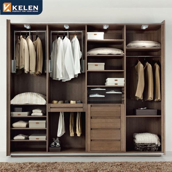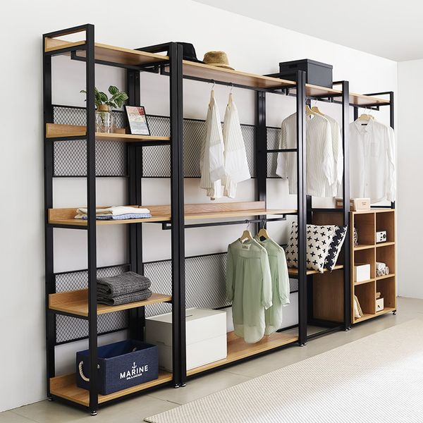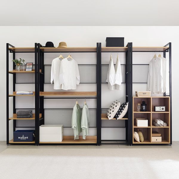 Bedroom Furniture Black Steel Frame Acacia Walnut Wooden Shelf Clothing Wardrobe Design Metal Closet$65
