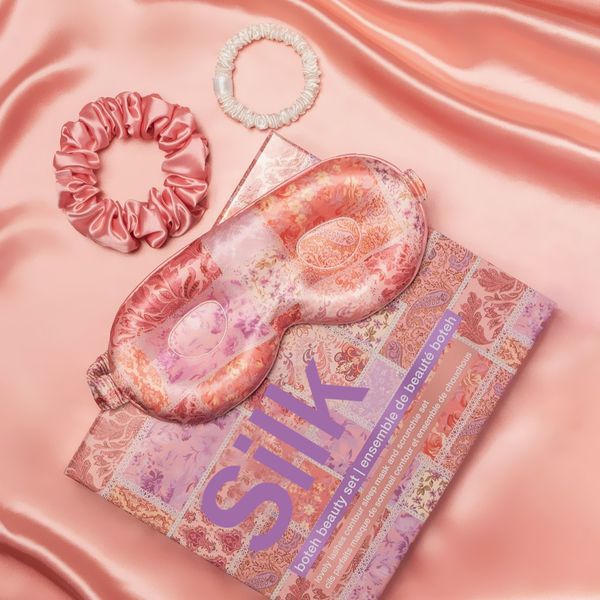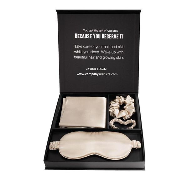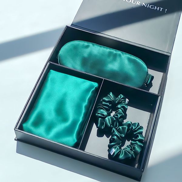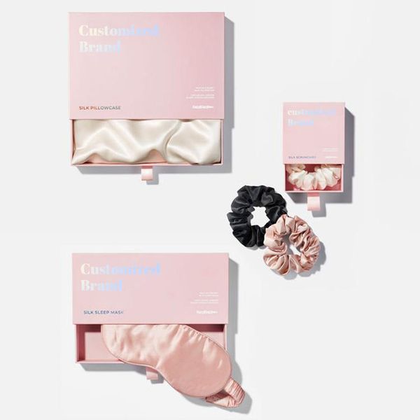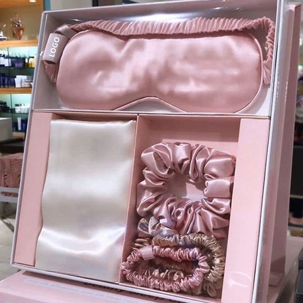 Non-toxic 19 22 25 30mm Custom Embroidery 100% Mulberry SILK Scrunchy Eye Mask and Silk Pillowcase Gift Set$13