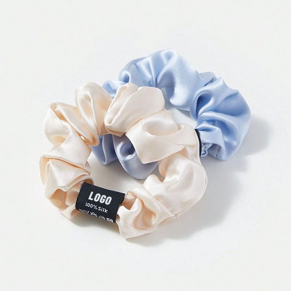 Wholesale Factory Custom logo Bulk Women Large Silk Satin Scrunchy Hair Ties 100% Mulberry Silk Hair Scrunchie$1.51