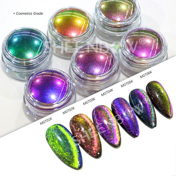 SHEENBOW Aurora Rainbow Holographic Magnetic Cat Eye Nail Art Use Nail Gel Polish Used Cosmetics Pigment Powder$4.5