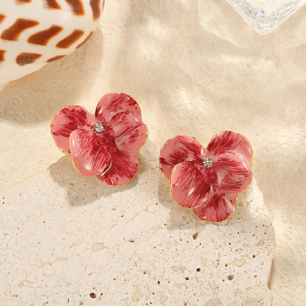 Rose Pink Oil Drop Flower Earrings for Women Trendy Exquisite Versatile Design for Spring Summer Niche Sweet Temperament Style$1.37