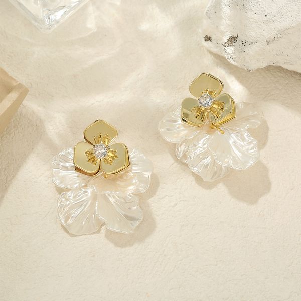 Minimalist Korean Style Metal Petal Inlaid Diamond Earrings Elegant Luxury Silver Needle Studs High-End Fashion for Women$2.57