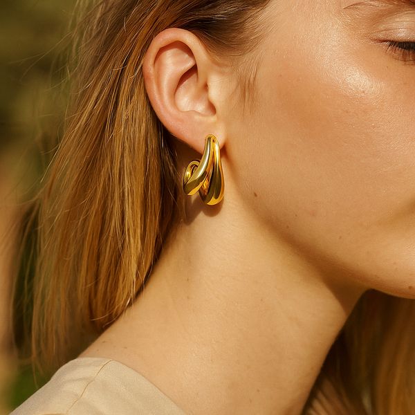 18K Real Gold Plated Multilayer C-Shaped Curved Stainless Steel Earrings Polished Texture Versatile Luxury Style Internet Studs$2.25