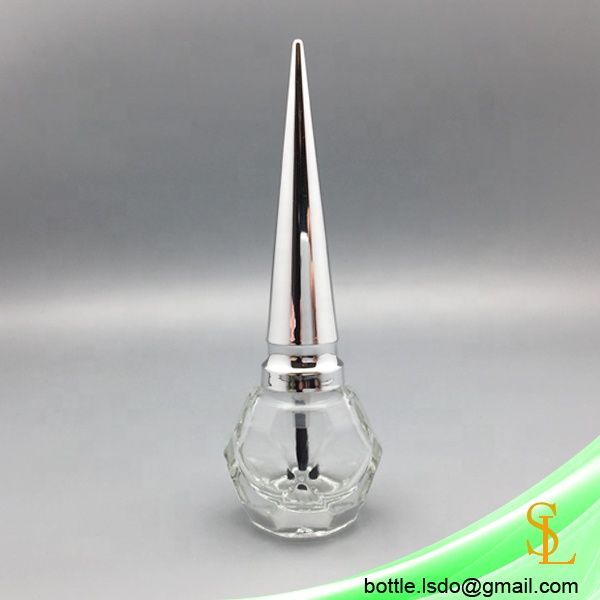 Long Silver Nail Polish Cap Empty Nail Polish Bottles 8ml Diamond Shape Nail Packaging with Brush Cap$0.18