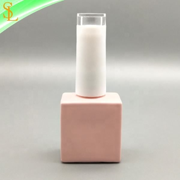 10ml square pink Nail Polish Bottle with clear Top White Nail Polish Cap and Gel Brush for Uv Nail Gel Polish$0.08