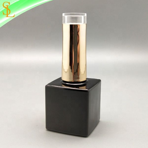 10 ml Glossy Black Empty Nail Polish Bottles square for Uv Nail Gel Polish with Top Open Gold Nail Polish Cap and Brush$0.15