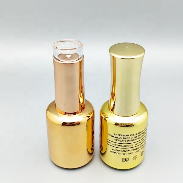 Luxury Unique 15ml Shiny Gold Nail Polish Gel Polish Bottle with Gold Nail Polish Cap and Flat Brush$0.37
