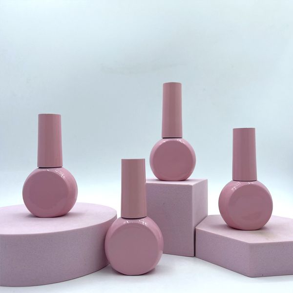 Large Nail Polish Bottle 15ml 20ml pink Empty Gel Polish Bottle with clear Top Light Gold Nail Polish Cap and Flat Brush$0.36