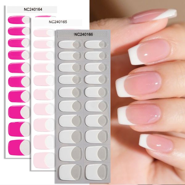 New Enhancement 3D French Gel UV Nail Wraps Semi-Cured UV Light Adhesive Nail Sticker Kits Polish Nail Wraps Polish Adhesive$1.44