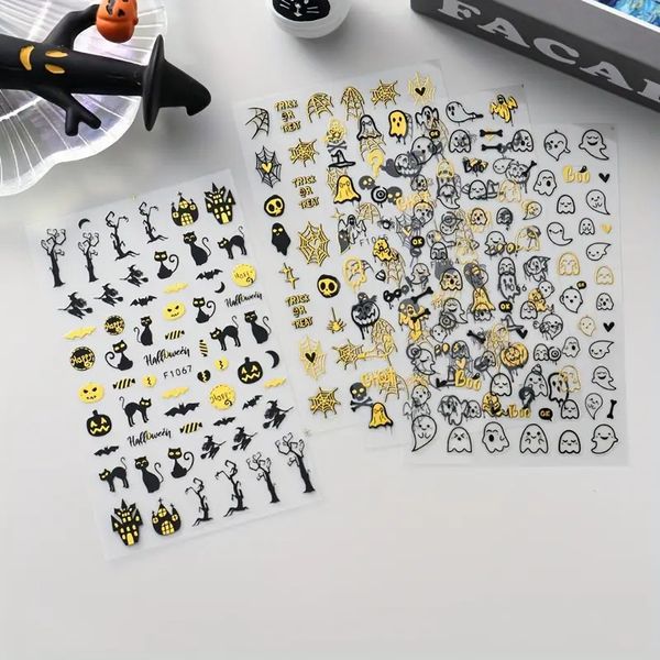 Halloween Nail Charms 3D Pumpkin Spider Web Skull Nail Decals Cartoon Halloween Nail Art Stickers$0.18
