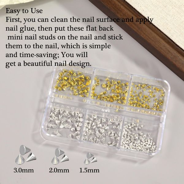 Punk Style Nail Supplies 6 Grids Mini Metal Rivet Nail Decor 3D Alloy Cone Rivet Nail Art Accessories$0.8