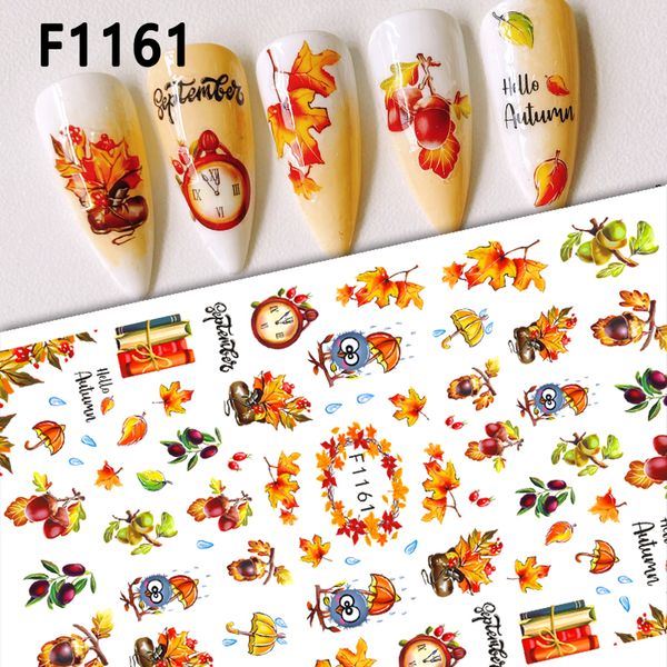 Autumn 3D Maple Leaf Pumpkin Flower Nail Art Sticker Self Adhesive Fall Cartoon Nail Sticker$0.18