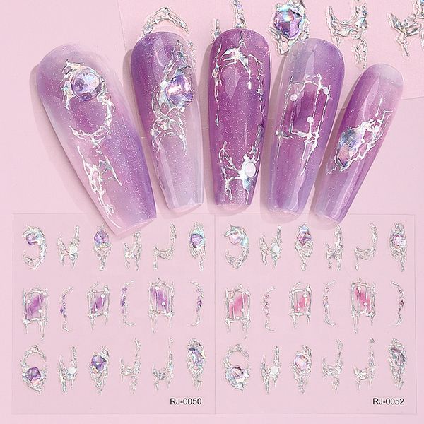 OEM Luxury Colorful 3D Crystal Gel Nail Wraps PET Material Unique Design Summer Gem DIY Art Sticker Free Sample$0.71