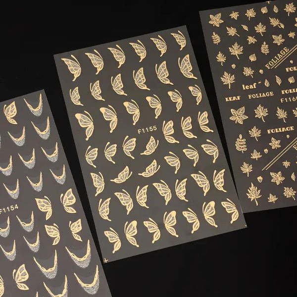 Nail Charms Golden French Lines Nail Stickers Self-Adhesive Shiny Butterfly Floral Nail Art Decals$0.18