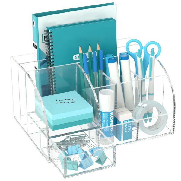 Acrylic Desk Organizer Pen Holder for Office Supplies and Desk Accessories Clear Office Desktop Organizer for Room$8.6