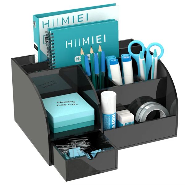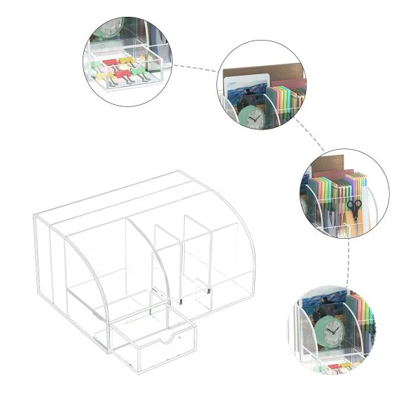 Desk Organizer 8 Compartments 1 Drawer Acrylic White Desk Organizer Office Desk Organizers for Desktop Office Home$6.22