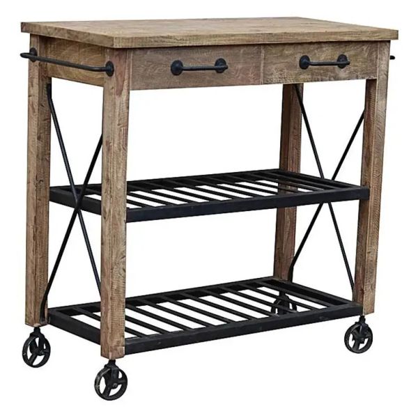 Indian Industrial Trolley Cart Kitchen Indian Serving Cart Wood & Metal Rolling Trolley Bar$75