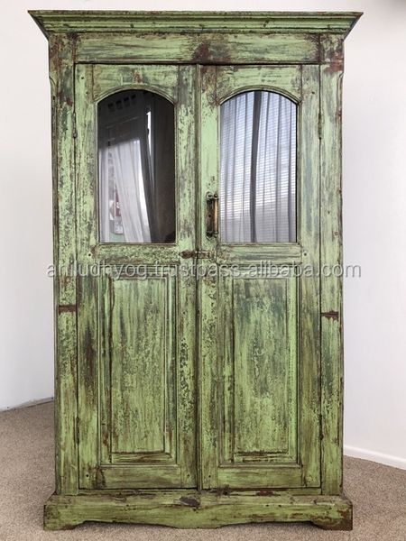 Rustic Finish Reclaimed Wood Wardrobe/Reclaimed Wooden Furniture/Vintage Indian Green Tall Boy$150