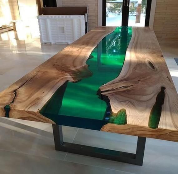 Luxury Furniture Modern Style Indian Solid Wood Live Edge Epoxy Resin Dining Table, Office Desk, Epoxy Restaurant Table$500