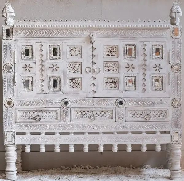 2025 New Modern Indian Handcraft Wooden Black Side Board With 4 Doors Bedroom Storage Indian Solid Mango Wooden Furniture 2025$250