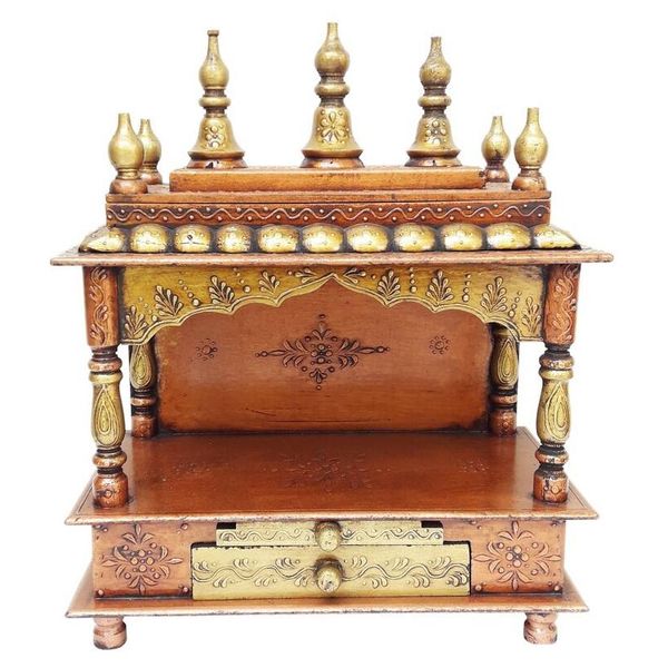 High Quality Modern Luxury Vintage Antique Indian Wooden Carved Solid Pooja Mandir Temple Furniture for Home Living Room$299