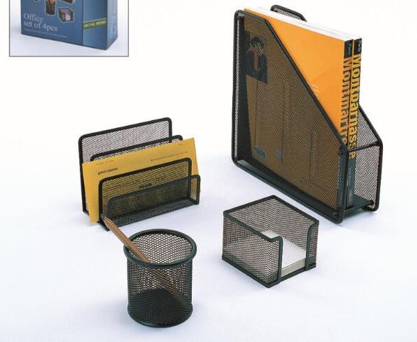 Desktop Metal Mesh 4 Pieces Stationery Set Office Organizer$3.5