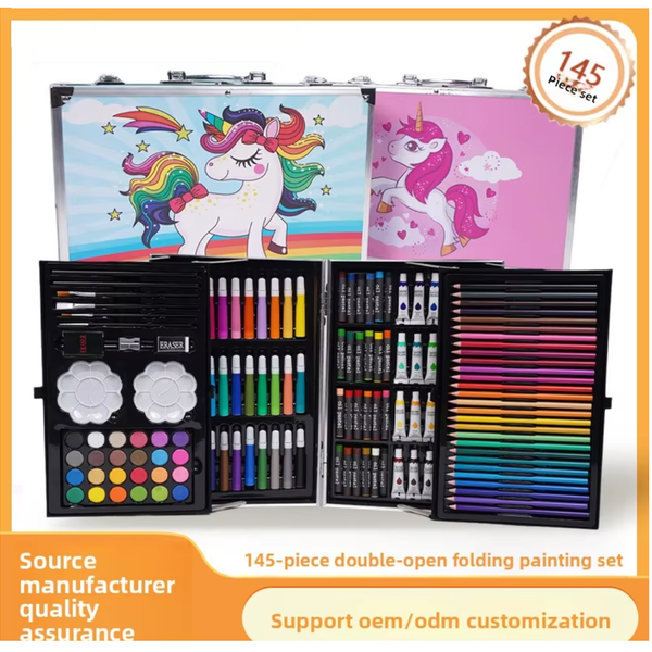 145-Piece Watercolor Pen Set for Kids Wood Art Painting Stationery Including Crayons Oil Pastels Paintbrushes for Drawing$3.99