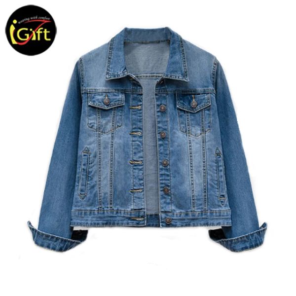 Ladies Pearl Jacket Denim Jacket with Grinding, Distressed Light Blue Single Breasted Denim Jacket for Women$17