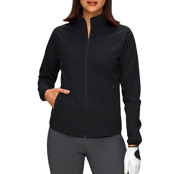 Factory Direct High Quality 100% Polyester Lightweight Solid Pattern Stand Collar Rain Jackets for Golf Lined with Nylon$15