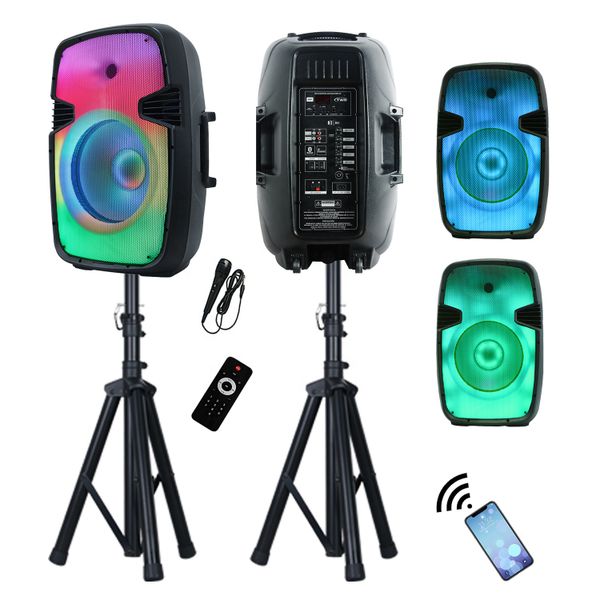 1500W15" Professional DJ/PA Active Portable Speakers Sound System Outdoor Karaoke Sets+Light+FM+Mic+Stand+RC Bocina Parlante$86