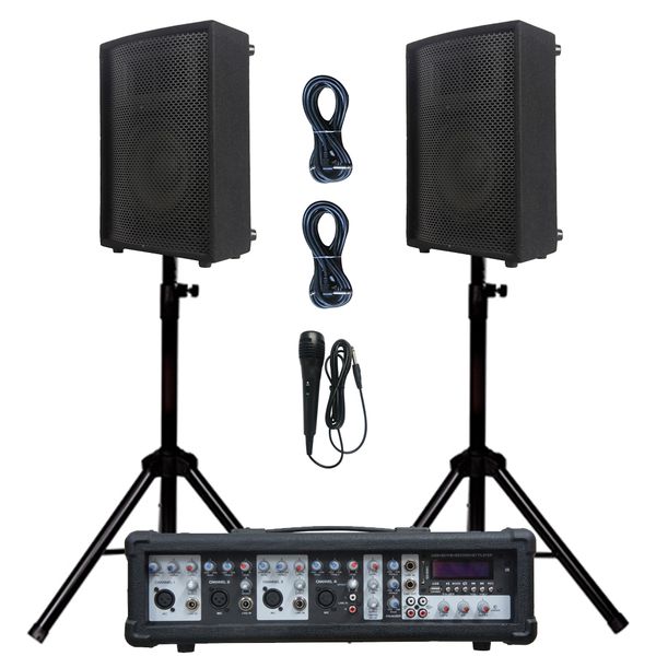 1000W 2X10"Subwoofer Portable PA Speaker System TWS Karaoke Sets Sound Box 4 Channel Powered Mixer Professional Sound$122.05