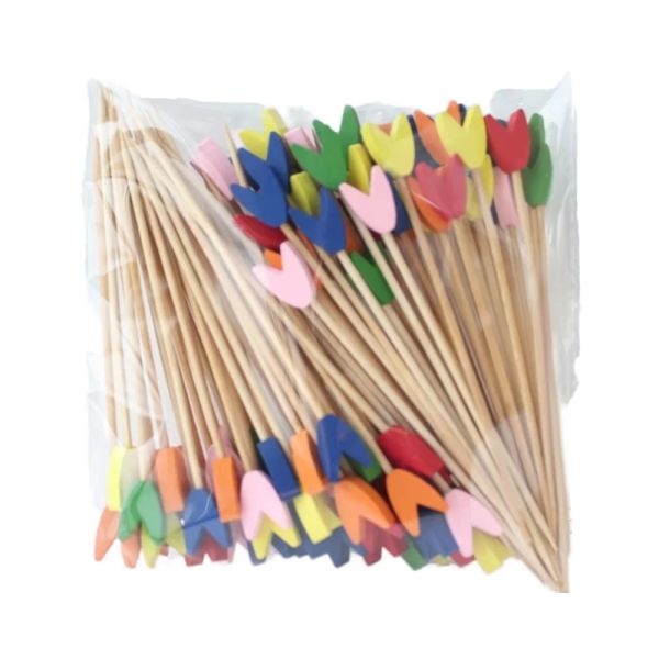 J&M 12cm Tulip-Shaped Cocktail Sticks - Mixed Colors, Durable & Disposable, 100-Pack for Parties & Social Gatherings$0.55