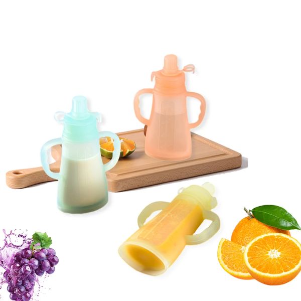 BPA Free Food Grade Silicone Breast Milk Storage Bag Wholesale Baby Food Squeezable Pouch Bottle with Handle$2.16