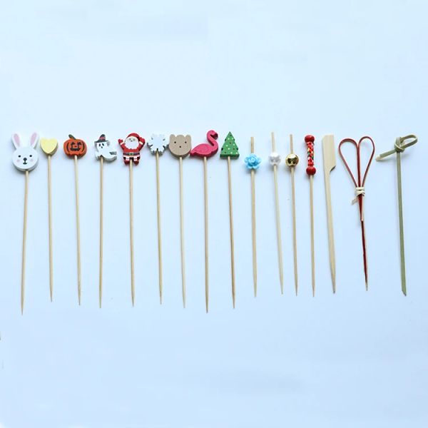 Jimao Red Pearl Black Rods Bamboo Biodegradable Cocktail Picks Decorative Cartoon Food Fruits Picks Mini Dessert$0.17