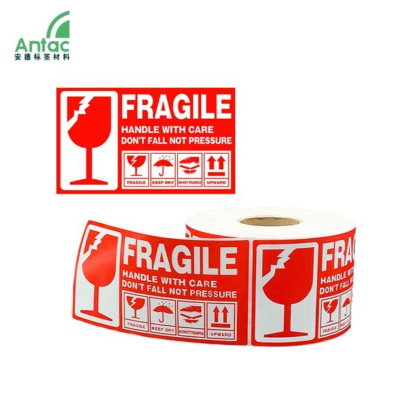 Custom Size Your Logo Fragile Label Sticker Roll Package Dispatch Warning Fragile Shipping Stickers Paper Packing Material Antac$0.5
