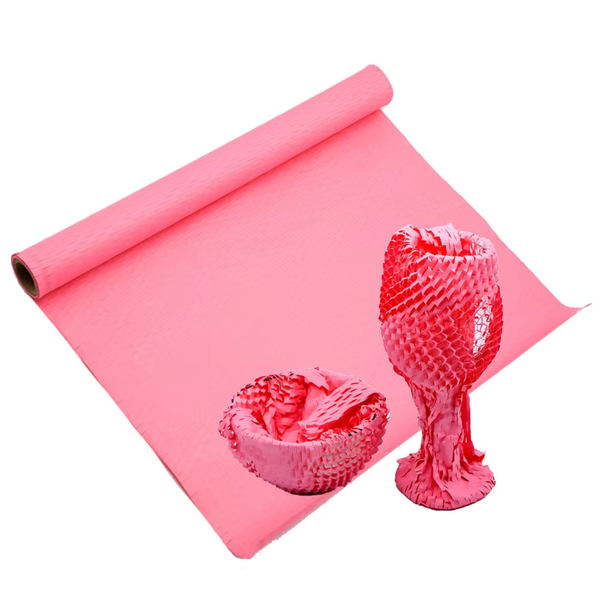 Biodegradable Eco Friendly Recycled Pink Honeycomb Cushion Wrapping Packing Paper Wrap Roll for for Craft Florist Supplies Gifts$7