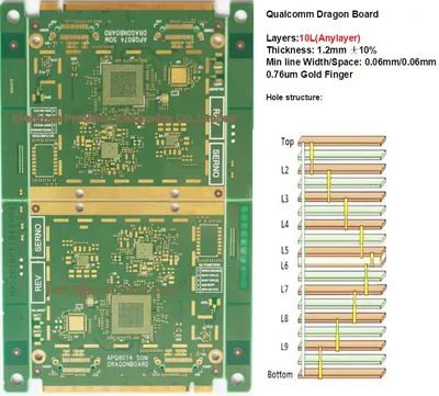 10layers Micro-Vias for Anylayer Dragon Board for Qualcomm Partner