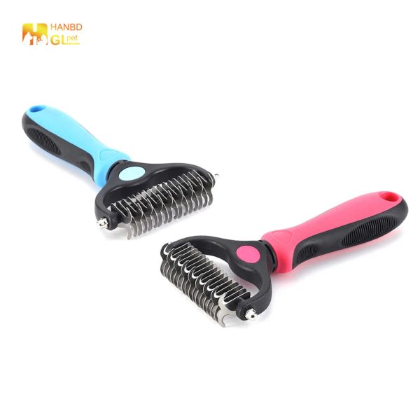Wholesale Pet Hair Remover Brush Grooming Brush Double Sided Shedding and Dematting Undercoat Rake Comb for Dogs and Cats$0.89