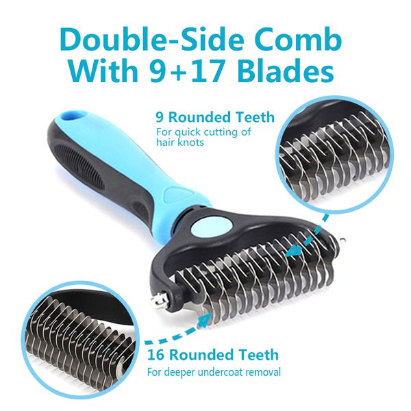 Double Sided Shedding Dematting Undercoat Rake Dog Hair Comb,Cat Dog Hair Remover Brush Pet Grooming Brush Deshedding$1.2