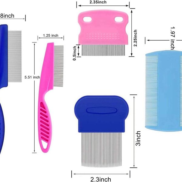 Pet Grooming Brush Set 5 Pack Flea Lice Comb,Stainless Steel Dog Cat Grooming Combs Dematting Comb$1.48