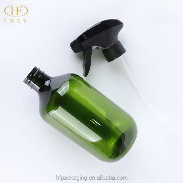 480ml/16oz Clear Round PET Plastic Spray Bottle Empty with Green Pump Head Trigger Sprayer for Room Use$0.15