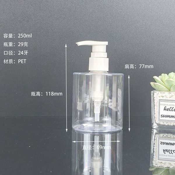 Luxury 250ml 300ml 500ml PET Plastic Lotion Bottles Pressure Pump Hand Soap boston Round Shampoo Bottle$0.15