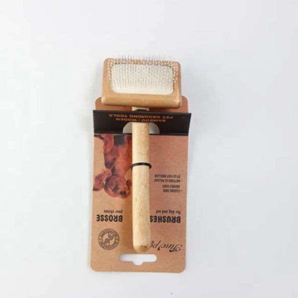 Pet Rake Dog Grooming Tool OEM Wood with Wood Brushes Sustainable Pet Cleaning & Grooming Products Back Card Packaging Fine PET$0.99