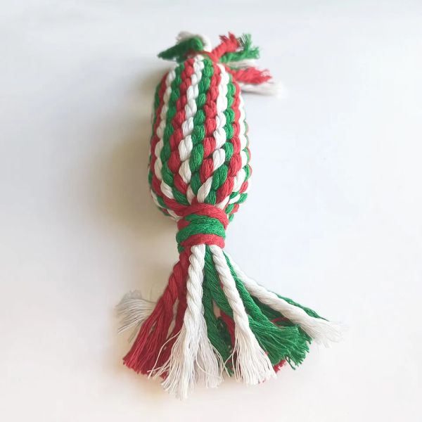 Manufacture New Christmas Colorful Cotton Rope Pet Dog Interactive Knot Squeaky Toy for Pet Teeth Cleaning$0.95