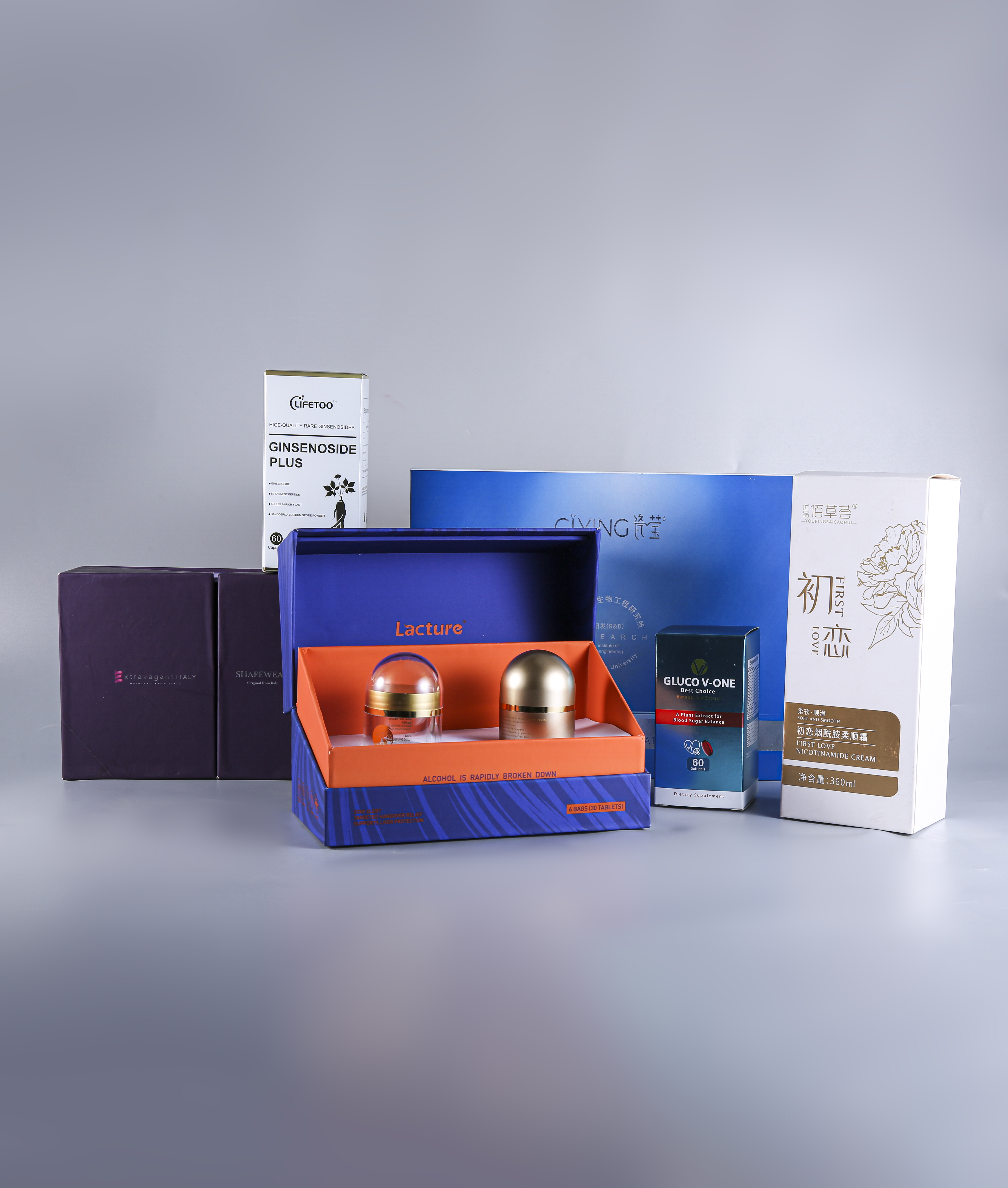 Plastic packing and closures only, Plastics and Articles Thereof, Glass containers for goods, Glass And Glassware, Aluminum containers up to 300L, Aluminium and articles thereof, PAPERBOARD CONTAINERS AND OFFICE GOODS, Paper and Paperboard Articles, Beauty and skin care products, Essential Oils and Cosmetics