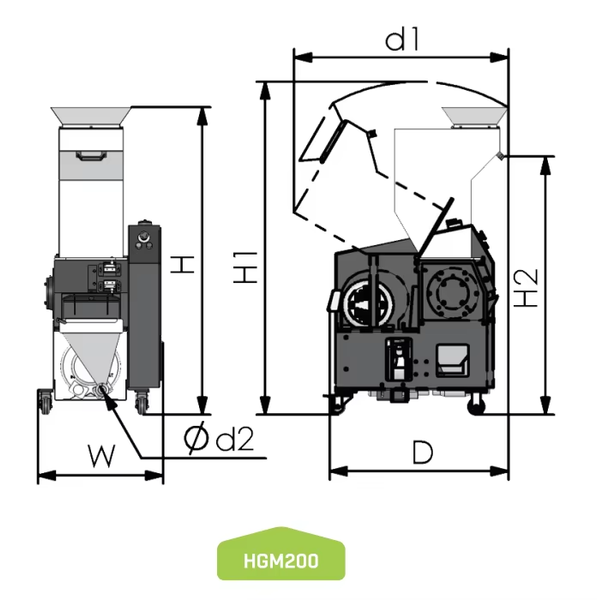 The company's comprehensive product portfolio includes solutions for granulating and shredding, mold temperature control, dehumidifying and drying, material loading and mixing, and industrial chilling. Specific equipment includes plastic granulators, high-performance crushers, hopper dryers, gravimetric blenders, and water-cooled or air-cooled industrial chillers. These products are designed to support various stages of plastic injection molding and material preparation, focusing on automation and efficiency.