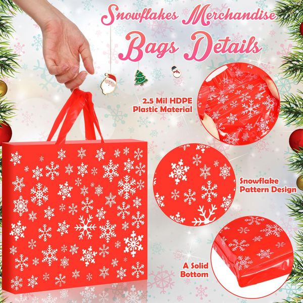 Custom Merchandise Bags Bulk Christmas Plastic Shopping Xmas Gift Bags with Handles Plastic Retail Snowflake Goodie Bags$0.05