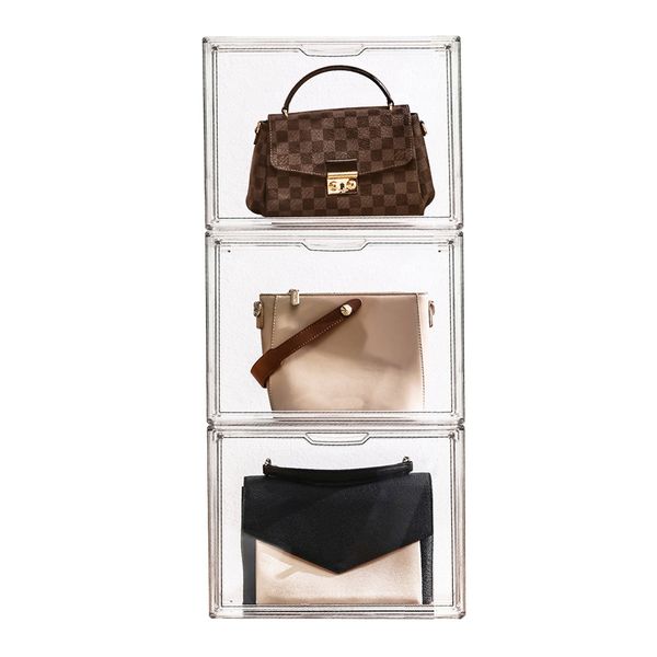 Transparent Plastic Stackable Shoulder Bag Organizer Storage Box Bins Dustproof Magnetic Open Clear Lady's Handbag Display Case$3.43