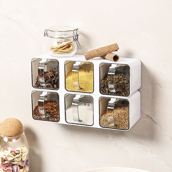 Kitchen 6 Compartment Seasoning Storage Boxes Set Plastic Seasoning Box Set Wall-Mounted Spice Box$0.96