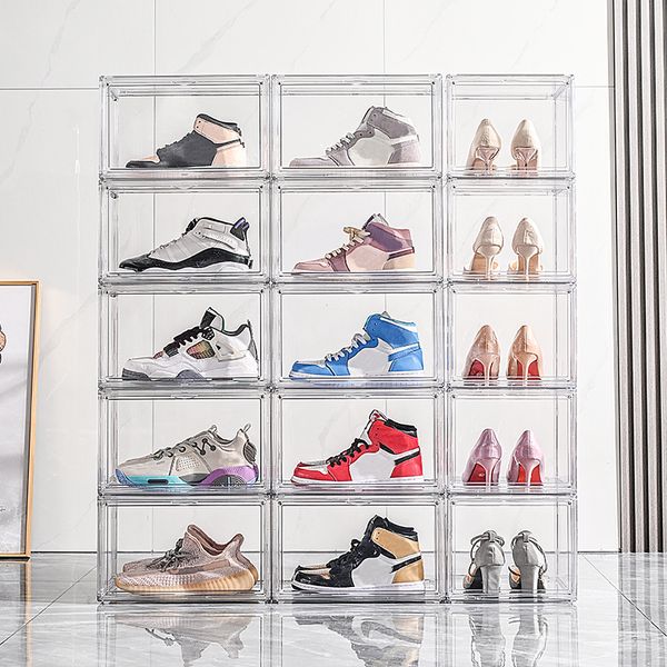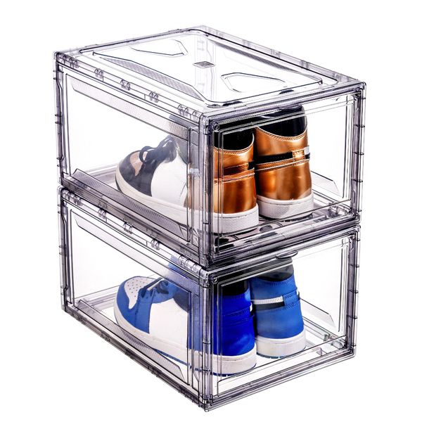 Drop Front Stackable Transparent Sneaker Organizer Giant Shoe Storage Container Plastic Magnetic Door AirJordan Shoe Box$2.6